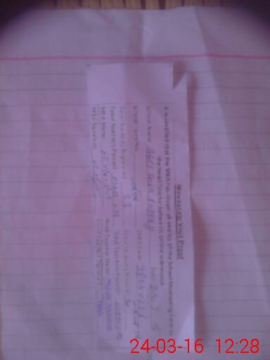 | Name: Sh**** Na**** Designation: (School Headmaster's/Headmistress's) PST Phone/Cell Number: 03**** |