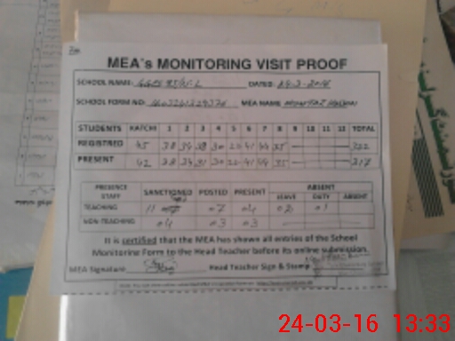 | Attendance Register | Head Teacher | MEA with School | Visit Proof |