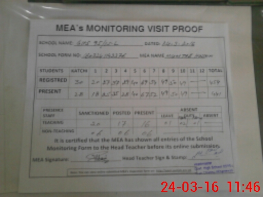 | Attendance Register | Head Teacher | MEA with School | Visit Proof |