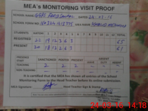 | Attendance Register | Head Teacher | MEA with School | Visit Proof |
