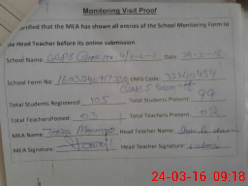 | Attendance Register | Head Teacher | MEA with School | Visit Proof |