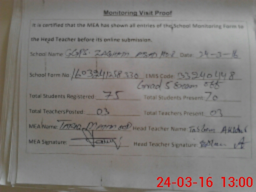 | Attendance Register | Head Teacher | MEA with School | Visit Proof |