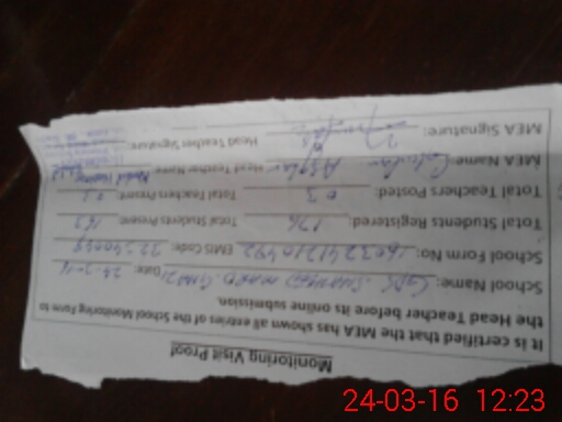 | Name: Mu**** Ak**** Designation: (School Headmaster's/Headmistress's) Pst Phone/Cell Number: 03**** |