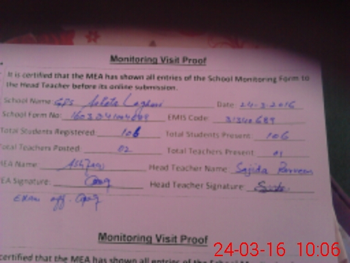 | Certified that this School was Inspected by the Undersigned MEA/DMO Today and the Information Stated Above is as Per Record. | |||||