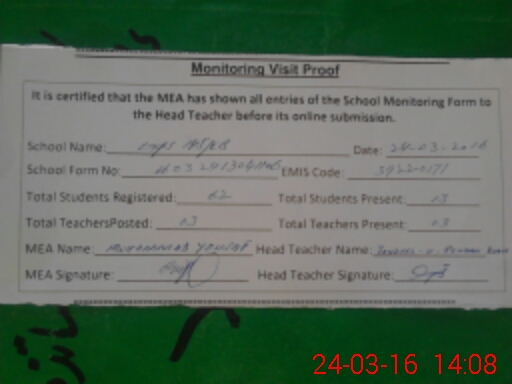 | Certified that this School was Inspected by the Undersigned MEA/DMO Today and the Information Stated Above is as Per Record. | |||||