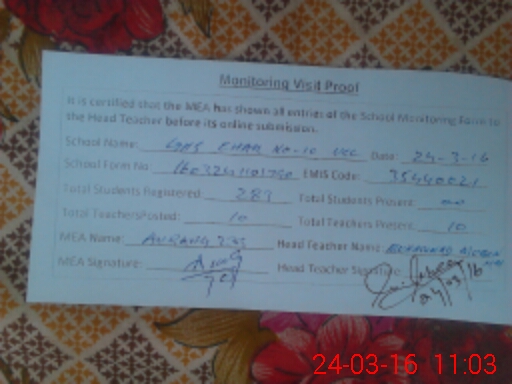 | Certified that this School was Inspected by the Undersigned MEA/DMO Today and the Information Stated Above is as Per Record. | |||||