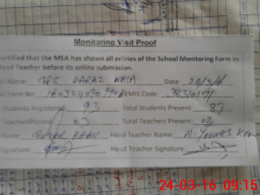 | EMIS Code: 38310171 | Name of School: GPS DARAZ WALA | |||