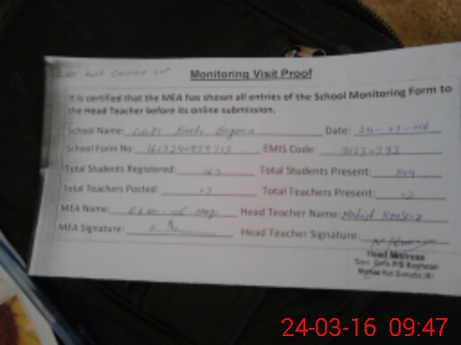 | Attendance Register | Head Teacher | MEA with School | Visit Proof |