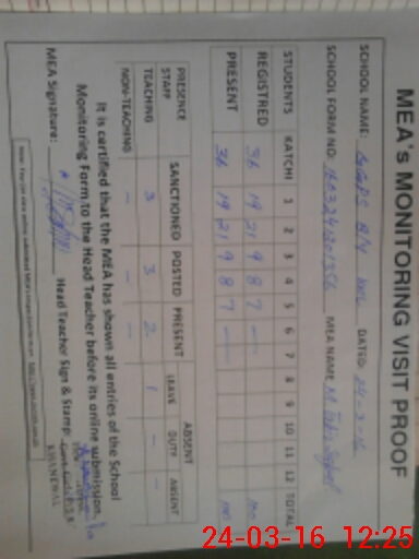 | Monitoring Date: 24-03-2016 | Start Time: 24-03-2016 12:01 PM | End Time: 24-03-2016 12:28 PM | Name of MEA: M.Ta**** Iq**** (S**** | |