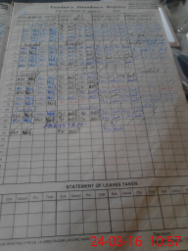 | CNIC | Full Name | Designation | R/C | Absence During Last Calender Month |
