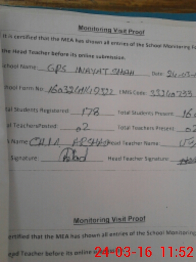 | EMIS Code: 33240733 | Name of School: GPS INAYAT SHAH | |||