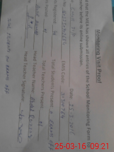 | Certified that this School was Inspected by the Undersigned MEA/DMO Today and the Information Stated Above is as Per Record. | |||||