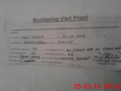 | EMIS Code: 31140105 | Name of School: GGES CHAK 122/6-R | |||