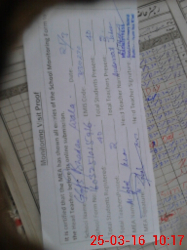 | Attendance Register | Head Teacher | MEA with School | Visit Proof |