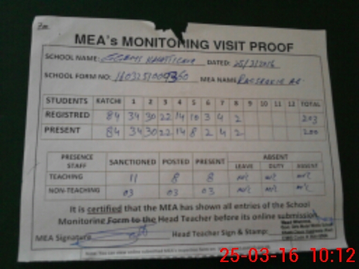 | Attendance Register | Head Teacher | MEA with School | Visit Proof |