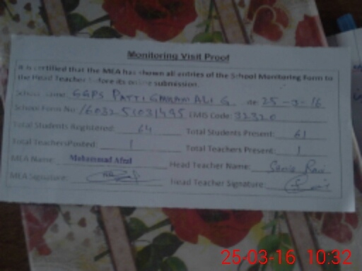 | EMIS Code: 32320907 | Name of School: GGPS PATTI GHULAM ALI GHARBI | |||