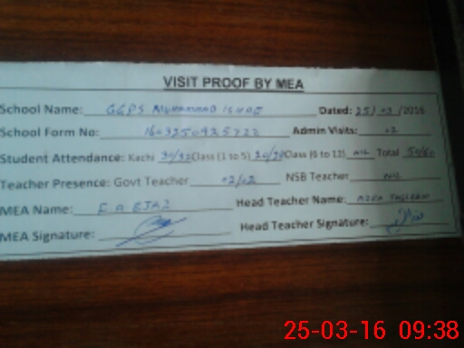 | Certified that this School was Inspected by the Undersigned MEA/DMO Today and the Information Stated Above is as Per Record. | |||||