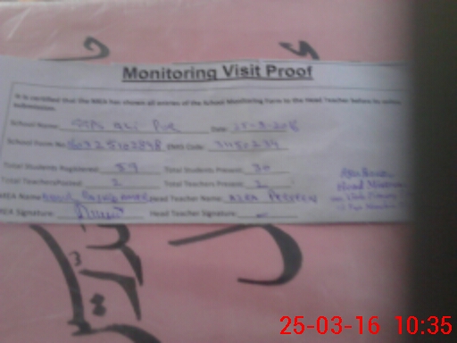 | Attendance Register | Head Teacher | MEA with School | Visit Proof |
