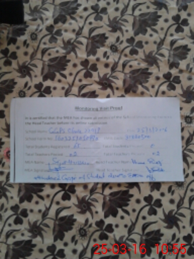 | Attendance Register | Head Teacher | MEA with School | Visit Proof |