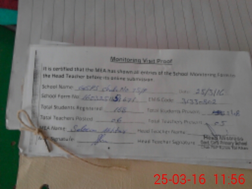 | Attendance Register | Head Teacher | MEA with School | Visit Proof |
