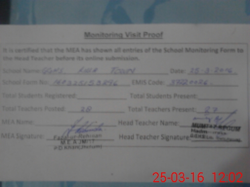 | Certified that this School was Inspected by the Undersigned MEA/DMO Today and the Information Stated Above is as Per Record. | |||||