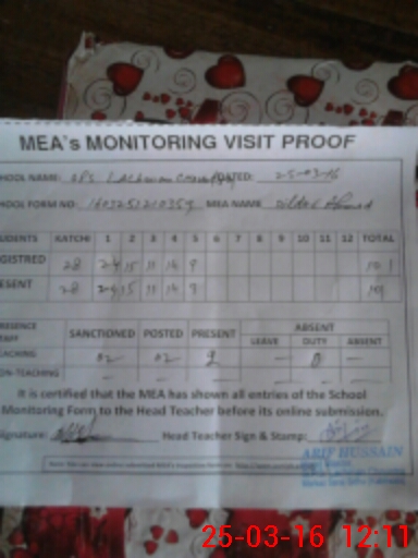 | Attendance Register | Head Teacher | MEA with School | Visit Proof |