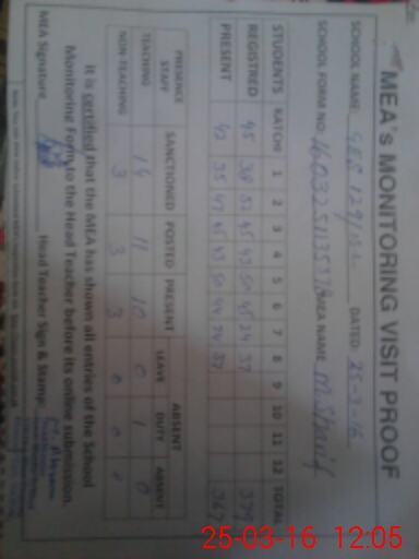 | Certified that this School was Inspected by the Undersigned MEA/DMO Today and the Information Stated Above is as Per Record. | |||||