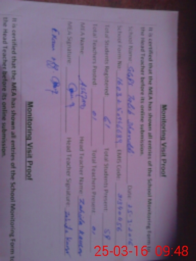 | Certified that this School was Inspected by the Undersigned MEA/DMO Today and the Information Stated Above is as Per Record. | |||||