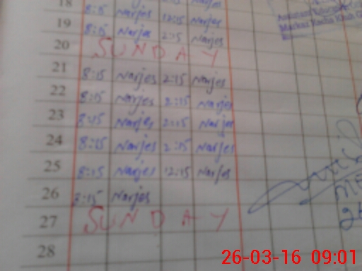 | Monitoring Date: 26-03-2016 | Start Time: 26-03-2016 08:49 AM | End Time: 26-03-2016 09:06 AM | Name of MEA: Z.**** M.Is**** | |