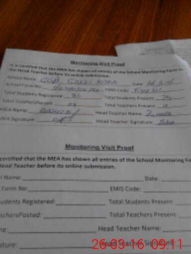 | Attendance Register | Head Teacher | MEA with School | Visit Proof |