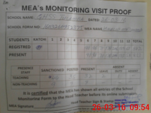 | Attendance Register | Head Teacher | MEA with School | Visit Proof |