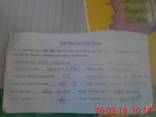 | EMIS Code: 35430984 | Name of School: GGPS MEHRAJ PURA | |||