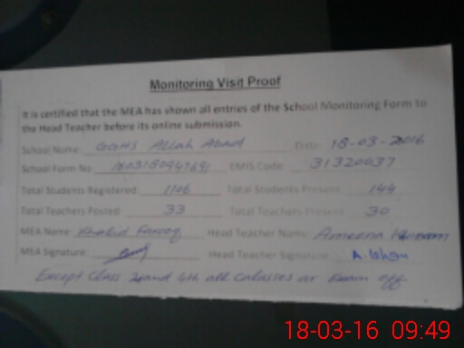 | EMIS Code: 31320037 | Name of School: GGHS ALLAH ABAD | |||