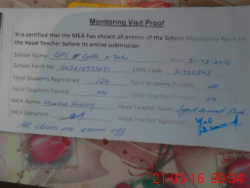 | EMIS Code: 31320245 | Name of School: GPS GOTH MAHI | |||