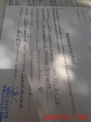 | Attendance Register | Head Teacher | MEA with School | Visit Proof |
