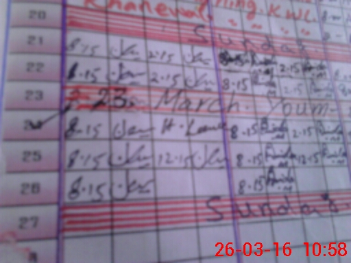 | Monitoring Date: 26-03-2016 | Start Time: 26-03-2016 10:14 AM | End Time: 26-03-2016 11:11 AM | Name of MEA: Z.**** M.Is**** | |