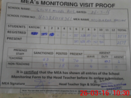 | Certified that this School was Inspected by the Undersigned MEA/DMO Today and the Information Stated Above is as Per Record. | |||||