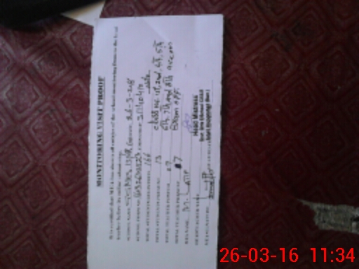 | Monitoring Date: 26-03-2016 | Start Time: 26-03-2016 10:25 AM | End Time: 26-03-2016 11:34 AM | Name of MEA: Mu**** La**** BN**** 03 | |