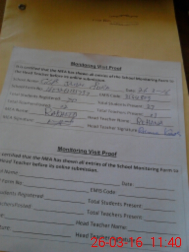 | Attendance Register | Head Teacher | MEA with School | Visit Proof |