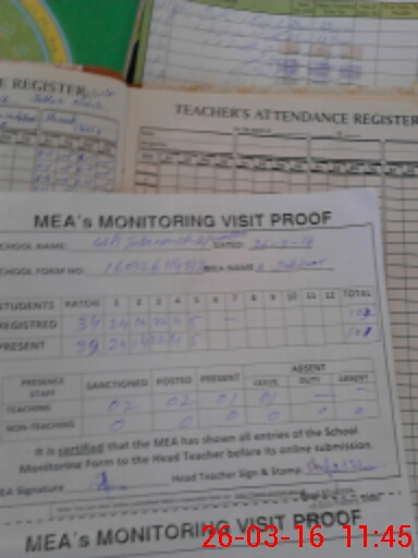 | Attendance Register | Head Teacher | MEA with School | Visit Proof |