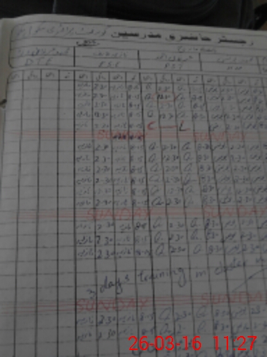 | CNIC | Full Name | Designation | R/C | Absence During Last Calender Month |