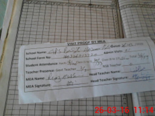 | Attendance Register | Head Teacher | MEA with School | Visit Proof |