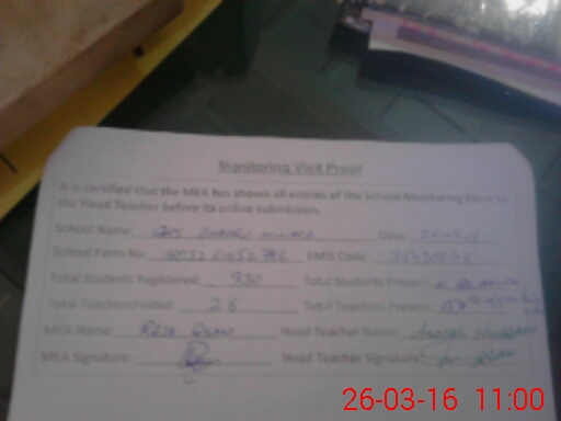 | Certified that this School was Inspected by the Undersigned MEA/DMO Today and the Information Stated Above is as Per Record. | |||||