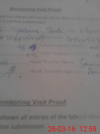 | Attendance Register | Head Teacher | MEA with School | Visit Proof |
