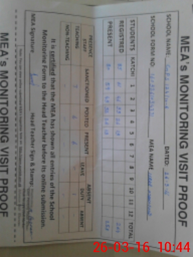 | Certified that this School was Inspected by the Undersigned MEA/DMO Today and the Information Stated Above is as Per Record. | |||||