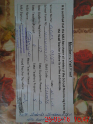| Certified that this School was Inspected by the Undersigned MEA/DMO Today and the Information Stated Above is as Per Record. | |||||