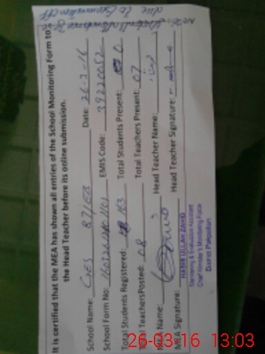 | Certified that this School was Inspected by the Undersigned MEA/DMO Today and the Information Stated Above is as Per Record. | |||||