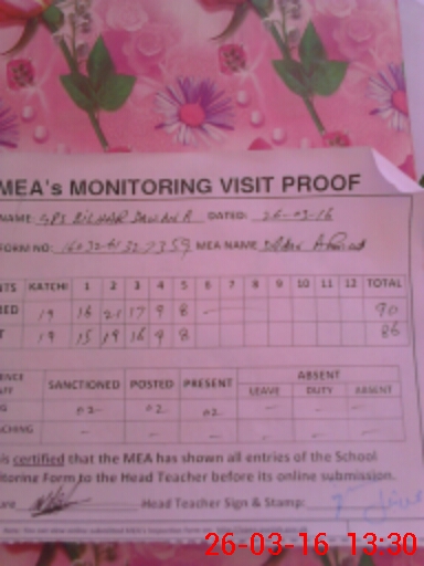 | Certified that this School was Inspected by the Undersigned MEA/DMO Today and the Information Stated Above is as Per Record. | |||||