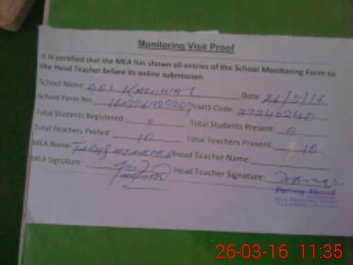 | Attendance Register | Head Teacher | MEA with School | Visit Proof |