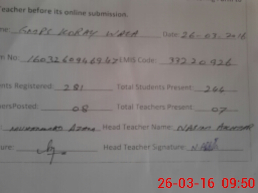 | EMIS Code: 33220926 | Name of School: GMPS KAURAY WALA | |||